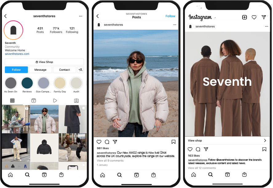 The main aims of this project were to reimagine the brand away from the bounds of a bright white studio space and express a more realised social media presence. A beach location was used to further emphasis the key selling points of the brands best selling puffer jacket, whilst paid advertisement and a new website design looked to incorporate such imagery.
